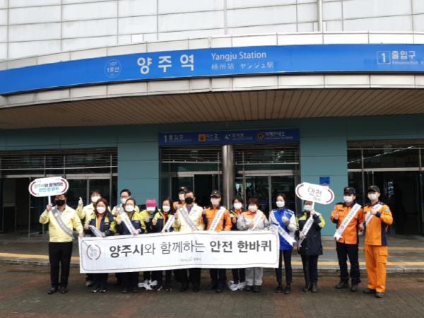 양주시는 지난 19일 양주역 일원에서 제290차 안전점검의 날을 맞아 ‘대한민국, 안전(하자)’의 일환인 ‘코로나19 예방(하자)’을 주제로 안전사고 예방 캠페인을 실시했다고 밝혔다.