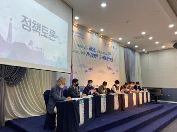발표에 이은 정책토론은 강길모 KIOST 책임연구원이 좌장을 맡고, 이성남 팀장, 이종민 서산시 해양수산과장, 전강석 태안군 해양산업과장, 김진수 국회입법조사처 입법조사관, 손상영 고려대 교수 등이 참여해 가로림만 해양정원 사업 타당성과 추가 검토사항에 대한 다양한 의견을 제시했다.