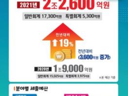 이제선 예산법무과장은 “2021년 재정운용 방향은 세입에 따른 세출을 알차게 배분하고 더 많은 재정 투자를 신속히 집행하는 것에 중점을 둘 것”이라며 “2021년 재정투자가 지금의 위기 속에서 회복을 넘어 도약의 디딤돌이 될 수 있도록 노력해 새로운 성장을 이끌어내도록 하겠다”고 말했다.