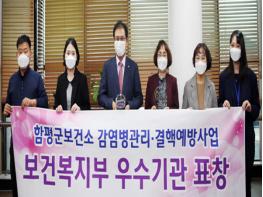 함평군보건소가 보건복지부 주관 ‘2020년도 감염병관리 및 결핵예방사업’ 평가에서 우수기관에 선정돼 장관 표창을 수상했다.