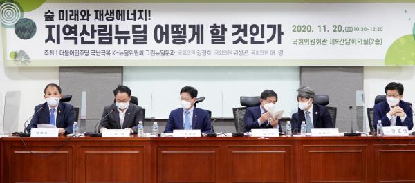 산림청은 20일 국회 의원회관 제9 간담회의실에서 산림을 활용하여 국가균형발전 방안을 모색하고 인간과 자연이 공존하며 지역 일자리를 창출하기 위한 ‘숲 미래와 재생에너지! 지역산림뉴딜 어떻게 할 것인가’ 국회토론회를 개최했다.