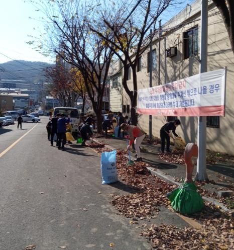 이번 환경대청소는 산막일반산업단지 주요도로변 은행나무 등 가로수가 많은 곳을 중점으로 낙엽을 수거하며 구슬땀을 흘렸다. 낙엽을 방치하면 비가 올 경우 보행자가 미끄러져 넘어지거나 도로변 배수로가 막히는 등 안전사고 위험이 있어 이번 대청소를 통해 말끔히 정리했다.