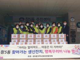 도봉구 창5동 지역사회보장협의체에서는 11월 17일 구내 저소득 독거어르신 가정을 방문해 생신을 맞은 어르신께 직접 생신상을 차려드리고, 독거노인 50분께 정성가득 손수 준비한 행복꾸러미 나눔행사를 진행했다.