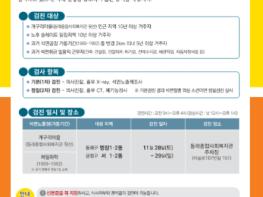 조사대상은 ▲구 개구리 마을(동래종합사회복지관 뒷 야산) 인근 지역에서 10년 이상 거주한 주민 ▲노후 슬레이트 밀집 지역 10년 이상 거주자 ▲과거 석면공장 가동 기간(1969~1992) 중 반경 2km 이내 5년 이상 거주자 ▲과거 석면 취급 일용직 근로자(건축·건설업, 건물해체·제거업, 선박수리업, 배관작업, 자동차정비업 등) 석면 피해가 의심되는 주민이다. 검진 인원은 300여 명으로 추정된다.