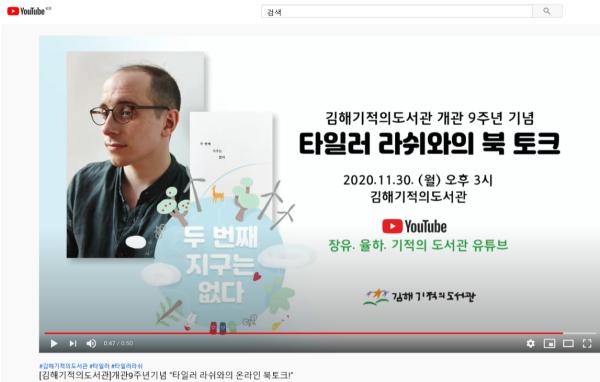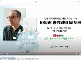 김해기적의도서관에서는 11월 30일 도서관의 9번째 생일을 기념하며 뇌섹남 타일러 라쉬와의 온라인 북토크를 개최한다. 방송을 통해 ‘언어 천재’, ‘뇌가 섹시한 남자’로 알려진 그가 사실은 열렬한 환경 운동가이자 실천가였음 소개하는 환경 에세이 「두 번째 지구는 없다」(RHK출판사)를 두고 이야기를 나눈다. 이번 만남은 11월 30일(월) 오후 3시부터 도서관 유튜브를 통해 생중계된다.
