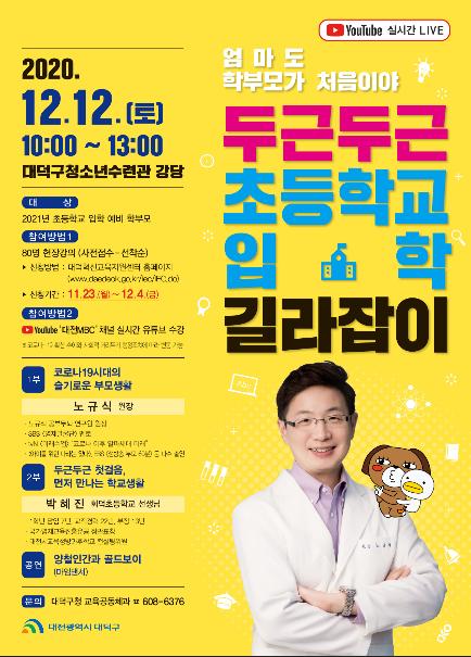 대전 대덕구는 오는 12월 12일 2021년 초등학교 입학 예비 학부모를 대상으로 ‘두근두근 초등학교 입학 길라잡이’를 운영한다.