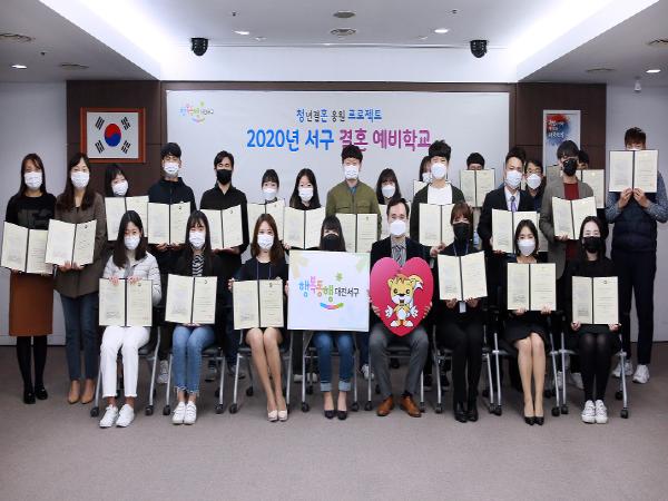 대전 서구는 지난 19일 청사 장태산실에서 청년 결혼 응원 프로젝트인 ?년 결혼 예비학교’수료식을 개최했다.