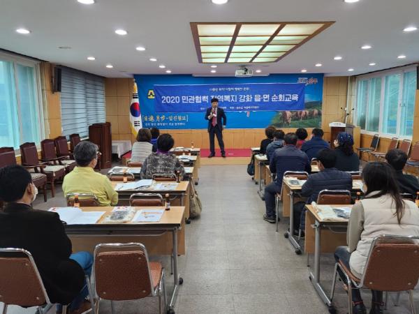 교육은 광신대학교 사회복지상담학과 김철진 교수를 초빙해 지역사회보장협의체 역할 및 기능, 읍면 마을복지계획 수립 방향에 대한 내용으로 강의를 펼쳤다.