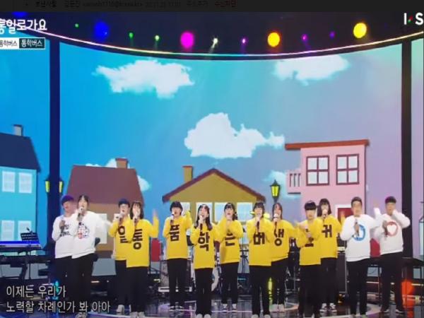 ‘통학버스’는 학생들도 예상치 못하게 예선과 본선을 통과하여 결선까지 진출하게 되었다. 결선을 앞두고는 ‘엄청 못하는 합창 뮤지컬 꿈의학교(대표 김대철, 이하 엄.못.뮤.)’ 온유 선생님의 노래지도와 엄.못.뮤. 참여 학생들의 안무 도움도 받았다.