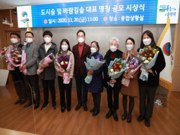 시상식에는 대상 수상자 김주영씨 등 공모에 선정된 8명이 참석했으며, 평택시 도시림 등 조성?심의 위원회 심의 등 3차에 걸친 심사 끝에 도시숲 대표 명칭은 ‘평택 시민의 숲’이 결정됐으며, 바람길숲 대표 명칭으로는 ‘국도1호선?그린터널숲’, ‘통복천?맑은숨 행복숲’, ‘진위천-별빛 담은 숲’, ‘안성천?산들바람숲’이 선정됐다.