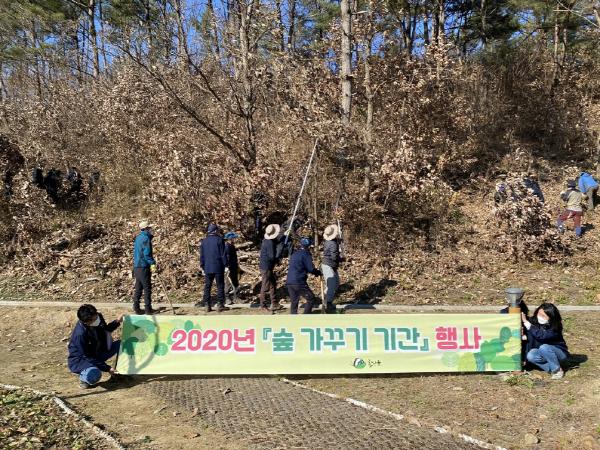 코로나19 예방을 위해 최소한의 인원으로 군 산림녹지과 직원, 산림관계자, 지역주민 등이 참여한 이날 행사에서는 공원에 버려진 쓰레기를 수거하고 수목 생육을 저해하는 칡덩굴 제거 등 숲 주변 환경 정화 활동을 펼쳤다. 또한 내방객들을 대상으로 숲 가꾸기의 필요성 등을 홍보했다.