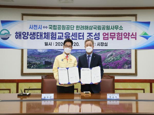 사천시는 지난 20일 국립공원공단 한려해상국립공원사무소와 해양생태체험교육센터 조성을 위한 업무 협약을 맺었다.