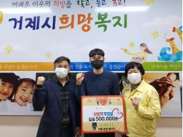 햇볕한줌거제청년봉사단(회장 이용희)은 지난 19일 거제시에 이웃돕기 성금 50만원을 전달했다.