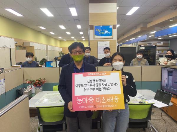 토지민원과 전 직원은 청렴 버킷을 준비하고 청렴 메시지를 고민하는 시간을 통해 공직자의 제1덕목인 청렴 의지를 확고히 하고, 동료에게 청렴을 권하면서 시민이 체감할 수 있는 청렴하고 친절한 민원 행정을 실천하자고 다짐했다.