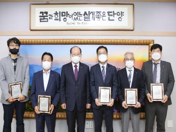 친환경 농업도시 단양군은 지난 18일 군수실에서 단양마늘 소비 촉진 및 유통판매 활성화 유공 5개 단체를 대상으로 감사패를 수여했다고 밝혔다.