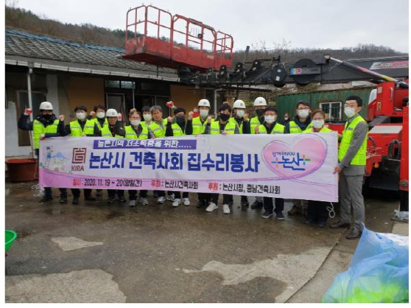 논산시 건축사회는 매년 지역사회봉사를 실천해오고 있으며, 올해는 관내 열악한 주거환경에서 생활하고 있는 기초수급자 및 저소득 독거노인 2가구를 선정, 시청 건축직 공무원(회장 김기봉) 10명과 재능기부를 통한 봉사활동을 실시했다.