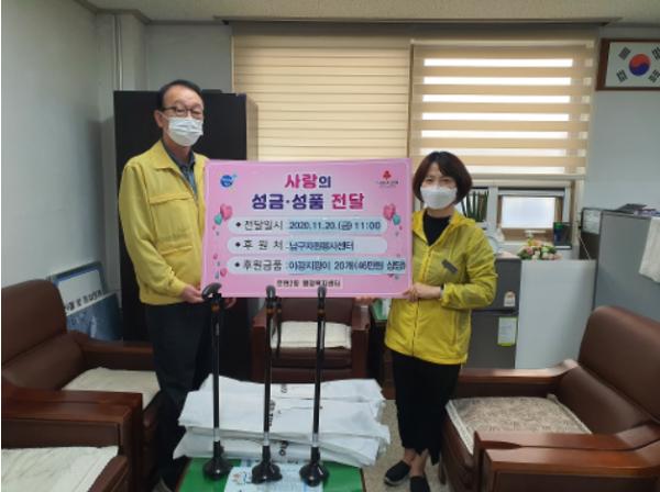 부산광역시 남구자원봉사센터는 11월 20일 부산 남구 문현2동행정복지센터(동장 박종호)에 어르신 교통안전 야광지팡이 20개(46만원 상당)를 전달했다.