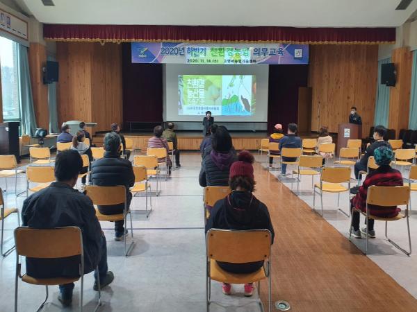 고양시는 지난 18일 농업기술센터 대강당에서 45명의 농업인이 참여한 가운데 2020년 하반기 친환경농업 ‘농산과정’ 의무교육을 실시했다고 밝혔다.