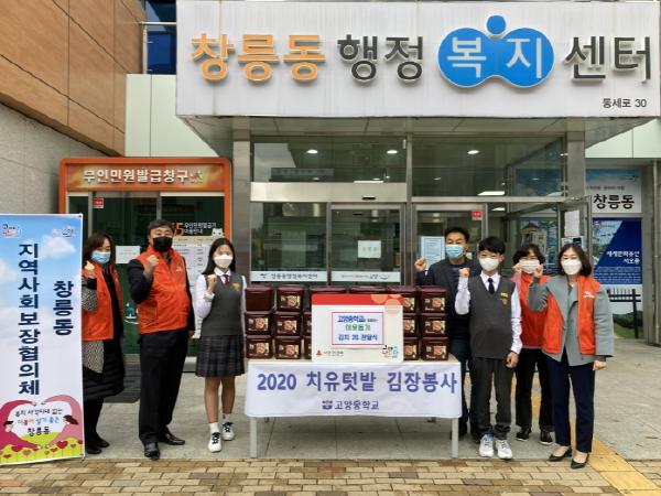 고양시 덕양구 창릉동(동장 양현종)은 20일 고양중학교에서 김장김치 9kg 20통을 후원했다고 밝혔다.