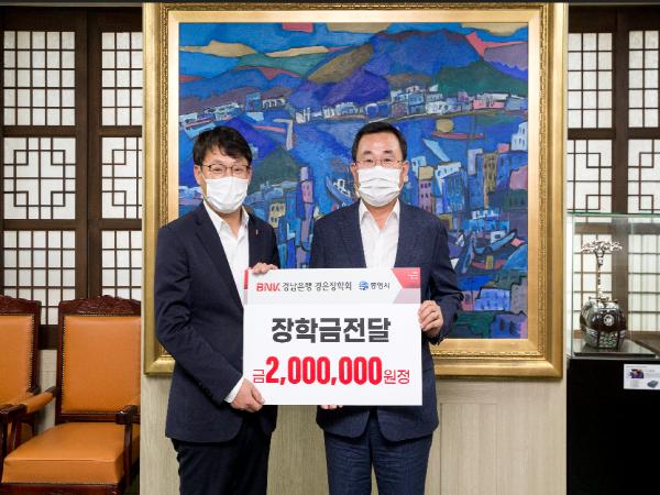 올해 창립50주년 맞은 BNK경남은행(통영지점장 손영익)은 11월 20일 통영시청에서 지역의 인재육성을 위한 ‘경은장학회 장학금’ 전달식을 가졌다.