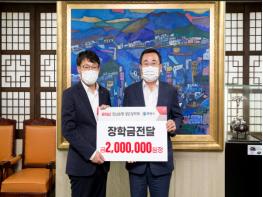 이날은 관내 저소득 모범청소년 중·고생 3명을 선정해 중학생 2명에게는 각각 50만원, 고등학생 1명에게는 100만원을 지원하여 총 200만원의 장학금을 전달했다.