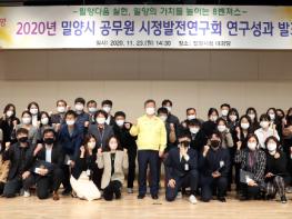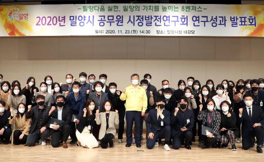 밀양시는 23일 시청 대강당에서 박일호 시장을 비롯한 시정발전연구회원 등 직원 120여명이 참석한 가운데 ‘2020년 밀양시 공무원 시정발전연구회 연구성과 발표회’를 가졌다.