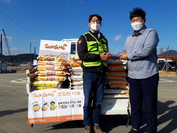 밀양시는 삼양식품에서 지난 20일 밀양공장 착공식 때 받은 축하쌀 55포(10kg/50포, 20kg/5포)를 관내 소외계층에게 전달해 달라며 밀양시에 기탁했다고 밝혔다.