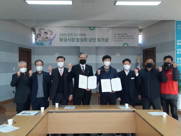 코로나19로 침체된 김천시 관내 전통시장에‘같이’의‘가치’실현이라는 따뜻한 상생의 움직임이 이어지고 있다. 그 따뜻한 상생의 일환으로 최근 관내 주요 기관인 새김천새마을금고와 황금·평화시장 상인회간의 자매결연이 11월 23일(월) 황금시장 상인교육관(10시)과 평화시장 상인교육관(11시)에서 진행되었다. 이번 자매 결연은 새김천새마을금고에서 주관하고 있는「내수경제 활성화 지원사업」의 성공적인 추진을 위한 상호간의 업무 협약을 주 내용으로 했다.