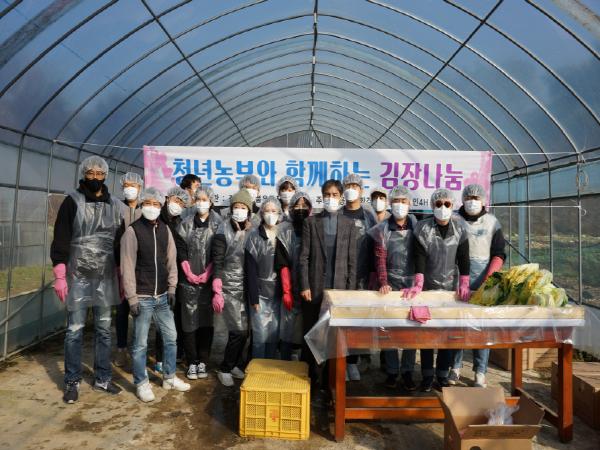 용인시는 23일 관내 청년 4-H, 친환경농업인연합회 등 2개 단체 청년 농업인 20명이 무료 급식 시설에 직접 담근 20㎏짜리 김치 13상자를 전달했다고 밝혔다.