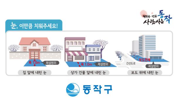 이밖에도 상가가 밀집되고 통행량이 많은 노량진1동, 사당1동 등 8개 동 주요 보도 및 이면도로 10곳에 삽, 넉가래, 빗자루가 비치된 무료 제설도구함을 설치해 주민이 손쉽게 제설을 할 수 있도록 했다.
