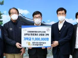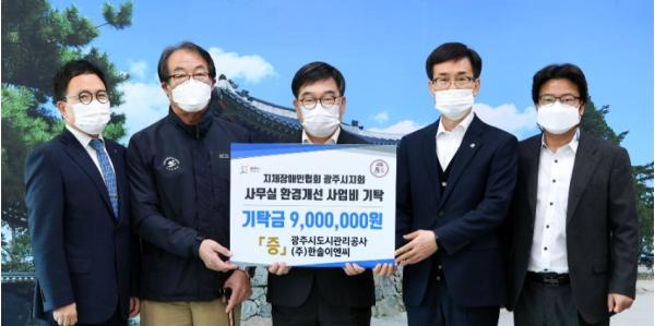 광주시는 지난 23일 시청 시장실에서 지체장애인협회 광주시지회 사무실 환경개선지원 사업비 900만원을 전달했다.
