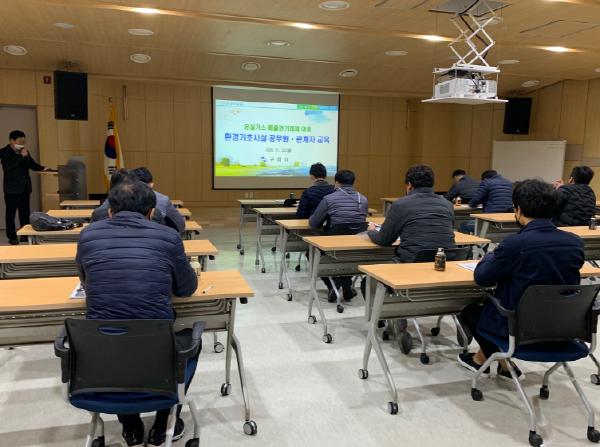 구미시는 2020년 11월 23일(월) 14시 구미시 탄소제로교육관 다목적홀에서 구미시 환경기초시설 담당공무원 및 관계자를 대상으로 온실가스 배출권 거래제 대응 교육을 사회적 거리두기 지침을 준수하면서 안전하게 실시하였다.