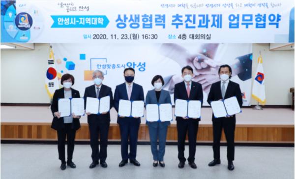 이번 협약에 따라 안성시와 지역의 5개 대학은 지식-인적, 공간-시설, 경제적 자원을 활용하여 22개 상생협력 과제에서 공동의 보조를 맞추게 된다.