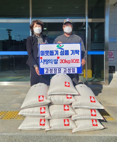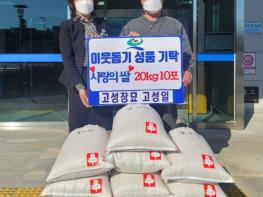 더불어 사는 사회를 만들기 위해 고성장묘 고성일 씨는 11월 23일 고성읍 행정 복지센터를 방문해 직접 농사지은 햅쌀 20kg 10포(50만 원 상당)를 전달했다.