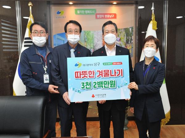 대구광역시 남구청은 지난 23일, 대구사회복지공동모금회(회장 김수학)에서 구청장실을 찾아 저소득층의 따뜻한 겨울나기를 위해 난방비 지원금 3천 290만원을 전달했다고 밝혔다.