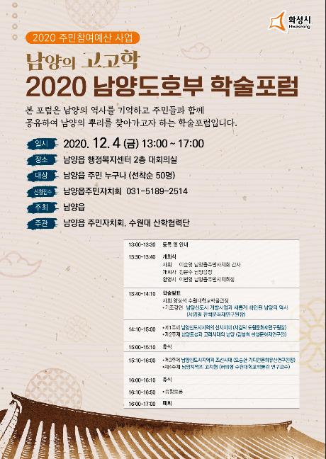화성시 남양읍이 ‘남양의 고고학’을 주제로 내달 4일 ‘2020 남양도호부 학술포럼’을 개최한다.