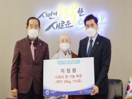 대한불교조계종 자정원(운제 주지스님)에서 24일 사회복지공동모금회를 통해 백미(10kg) 115포를 (사)의왕시노인회지회에 기탁했다.