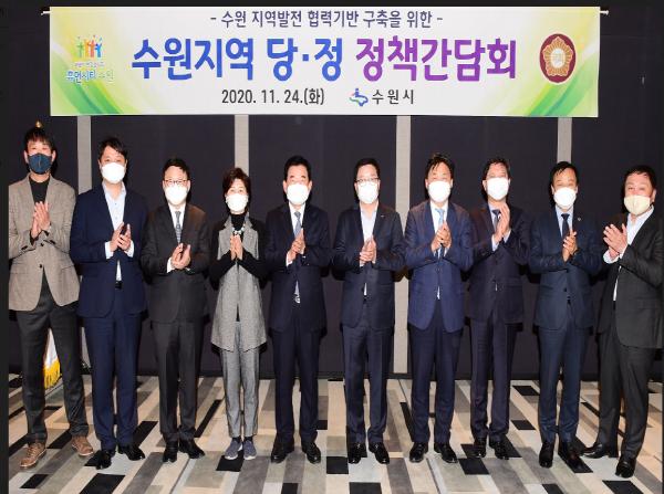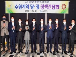 이날 간담회에는 염태영 수원시장과 김진표(수원시무)·박광온(수원시정)·백혜련(수원시을)·김영진(수원시병)·김승원(수원시갑) 의원, 장현국 경기도의회 의장, 조석환 수원시의회 의장 등이 참석했다.