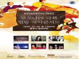 충주시립우륵국악단이 오는 26일 오후 7시 충주시 문화회관에서 ‘코로나19 극복 힐링 국악콘서트’를 선보인다.