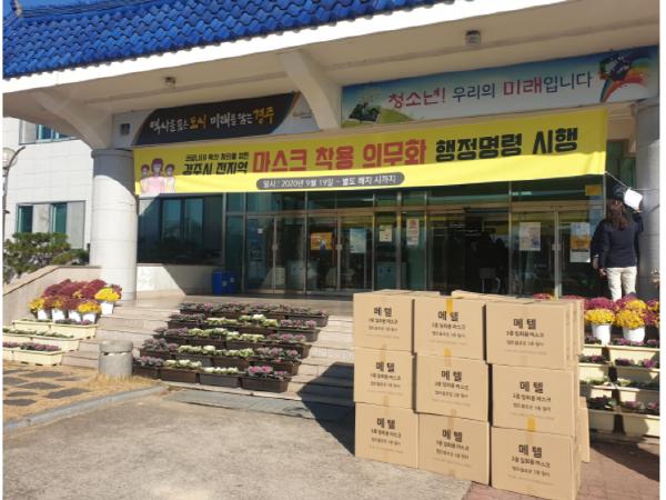한편, 경주시는 코로나19 확산 이후 현재까지 취약계층과 의료기관, 교육기관, 교통·운수업계, 다중이용 음식점 등지에 마스크 730,000장을 지원해 코로나19 확산방지를 위한 노력을 지속하고 있다.