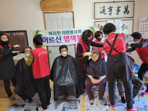 거창군 마리면자원봉사협의회(회장 이승우)는 소곡경로당 등 4개 경로당을 방문해 30여 명의 저소득 홀몸어르신들에게 염색봉사활동을 펼쳤다고 24일 밝혔다.