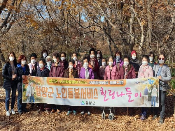 함양군 노인맞춤돌봄서비스는 사회관계 향상 프로그램으로 독거어르신 250명을 대상으로 11일부터 20일까지 상림공원, 남계서원, 함양목재문화체험관, 논개묘, 선비문화탐방로, 농월정 등 지역의 명승지를 방문하는 나들이 체험활동을 제공하였다.