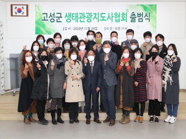 경남 고성군(군수 백두현)은 11월 24일 11시 고성읍 교사리 소재 ‘같이&가치 공작소’에서 백두현 군수와 관계자 30여명이 모인 가운데 고성군 생태관광지도사협회 출범식을 개최했다.