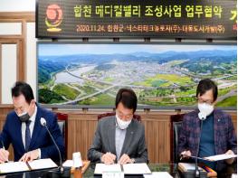 합천군은 24일 군청 소회의실에서 넥스타테크놀로지(주) 김정덕 회장과 대통도시개발(주) 최우열 회장은 합천메디컬밸리 조성사업의 원활한 사업 추진과 상호신뢰를 바탕으로 성공적 사업완수를 위해 함께 노력하자는 투자유치 양해각서 체결식을 가졌다.