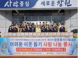 창원시는 24일 오전 11시 30분 국제라이온스협회 355-C지구 4A지역(부총재 사광희)·4B지역(부총재 표성자)이 코로나 위기가구를 지원하기 위한 KF94마스크 7,500매와 라면 1,500상자를 기탁했다고 밝혔다.