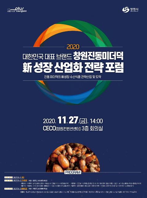 창원시는 진동미더덕의 新성장 수산식품 전략산업 및 도약발전 방안 마련을 주제로 11월 27일 14시에 창원세코에서 대학교 연구기관, 미더덕 영어조합법인, 수협, 가공업체 등 관계자 60여명이 참석하는 가운데 『창원진동미더덕 新성장 산업화 전략 포럼』을 개최한다.