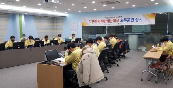 영양군 재난안전대책본부 13개 협업반 및 유관기관이 참여한 가운데 지진으로 인해 시설물이 파괴되고, 영양초등학교에 대형화재가 발생하였다는 상황을 가정하여, 지진 및 화재 시 초동대응 방법, 시간대별 재난대응 방법 등을 집중적으로 토론하였다.