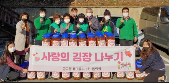 금곡동 새마을부녀회는 회원들과 함께 직접 농사 지은 배추와 무를 준비했고, 50가구에 전달한 김치통도 더 오랫동안 사용할 수 있도록 다회용 용기로 준비해 일회용품 줄이기 운동에 동참했다.