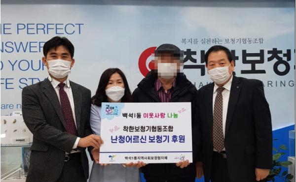 고양시 일산동구 백석1동(동장 이재복)은 지난 23일 착한보청기협동조합과 저소득 난청어르신을 위한 보청기 전달식을 진행했다.
