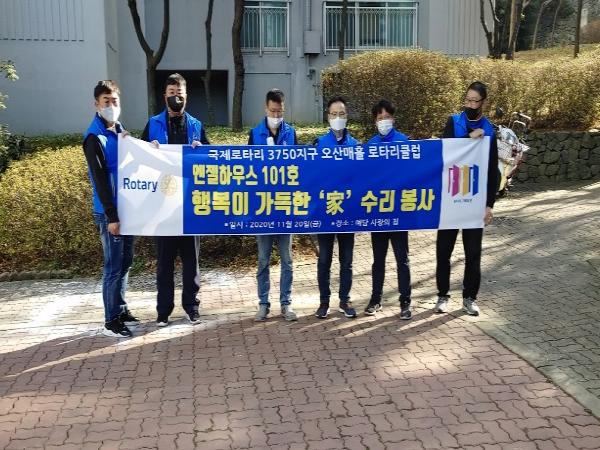 오산매홀로타리클럽(회장 손형래)은 지난 11월 18일부터 21일까지 4일간에 걸쳐 8명의 회원과 21명의 후원으로 세마동에 위치한 공동생활가정에 ‘욕실 보수공사 봉사활동’을 실시했다고 밝혔다.